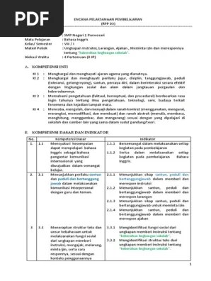 Rencana pelaksanaan pembelajaran rpp bahasa inggris smp kelas 7,8,9 k13.